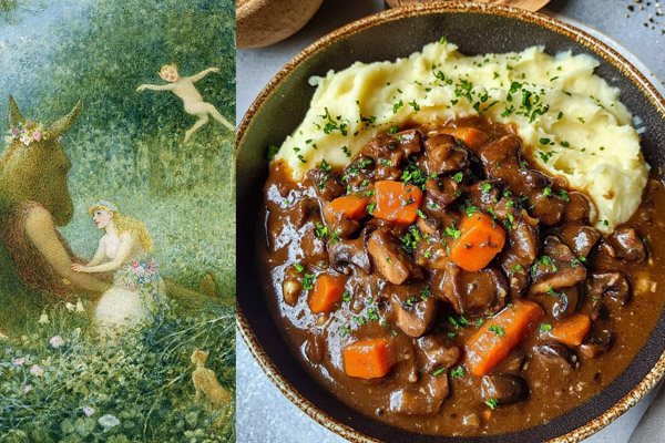 Cheese accompanied with slices of focaccia from The Downie Street Bakehouse. Our Hen of the Woods Bourguignon will be served with creamy