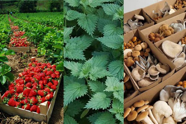 harvesting Cow Parslay, Nettles, Sochan and Pheasant Back Mushrooms.