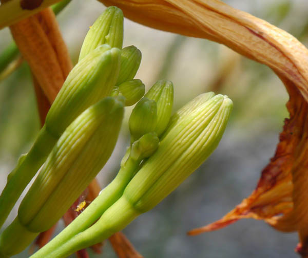 Once the Day Lily Shoots have thickened they send up stems that are home to the flower buds.